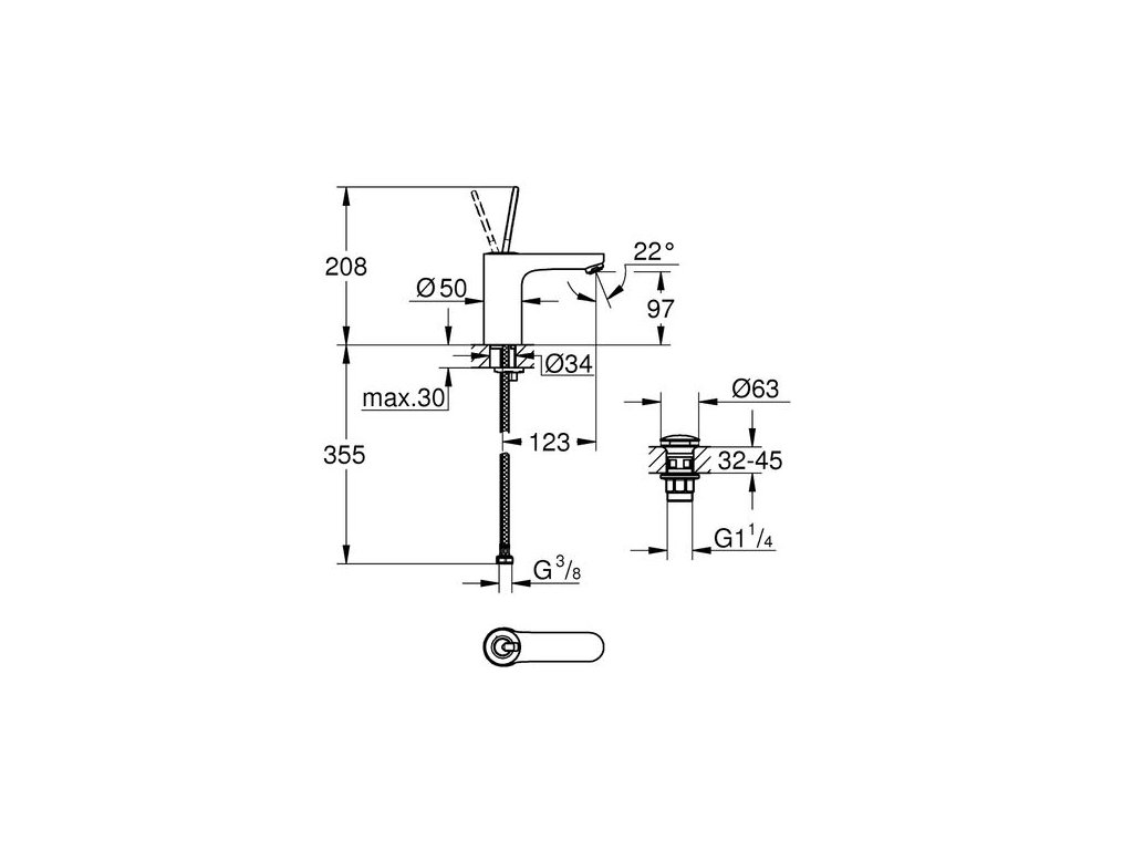 Grohe Get Joy Baterie umyvadlová stojánková páková s výpustí chrom 23800000