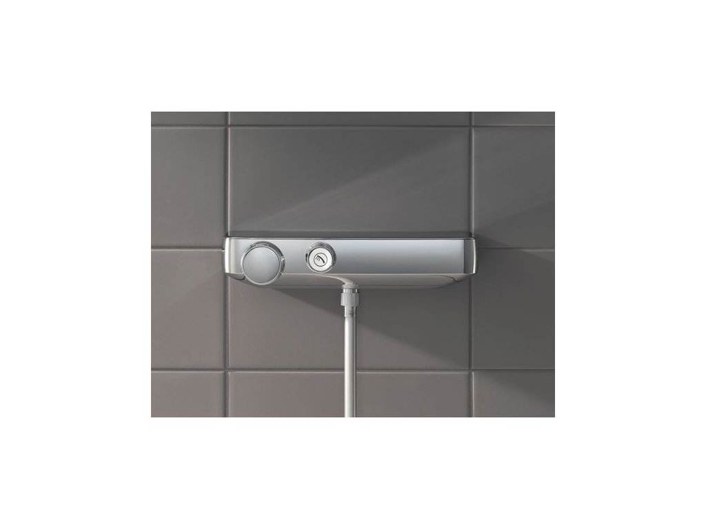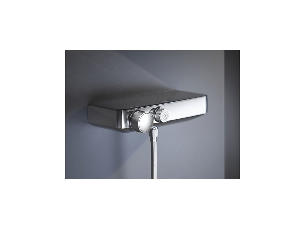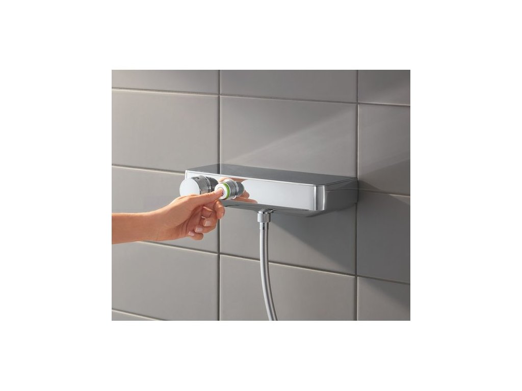 Termostatická sprchová baterie Grohtherm SmartControl je navržena pro nástěnnou montáž a propůjčí vaší koupelně nádech nenápadného požitku. Inovativní technologie GROHE SmartControl vám umožní spustit sprchu a regulovat objem vody a její teplotu pomocí otočných tlačítek. V případě potřeby je po stisknutí tlačítka samozřejmě možné nastavit teplotu vyšší. Volitelná pojistka GROHE SafeStop Plus zabraňuje nastavení vyšší teploty než 43 °C, což je přidaná úroveň zabezpečení.