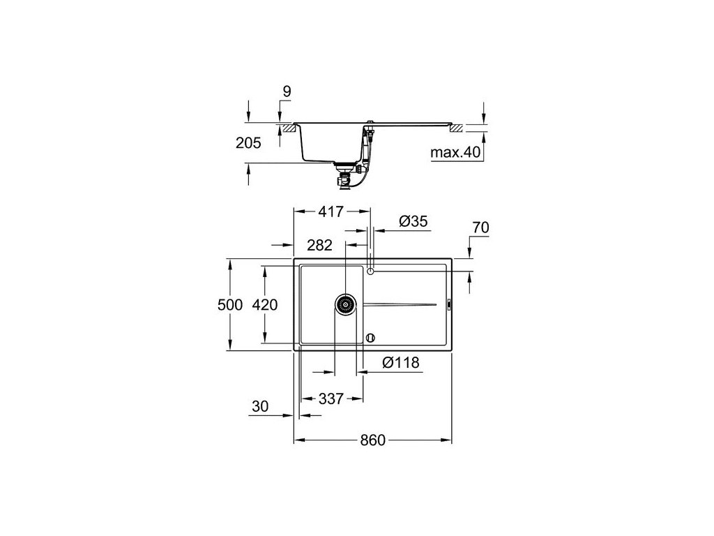 Grohe K400 Kompozitní dřez s odtokem 31640AP0
