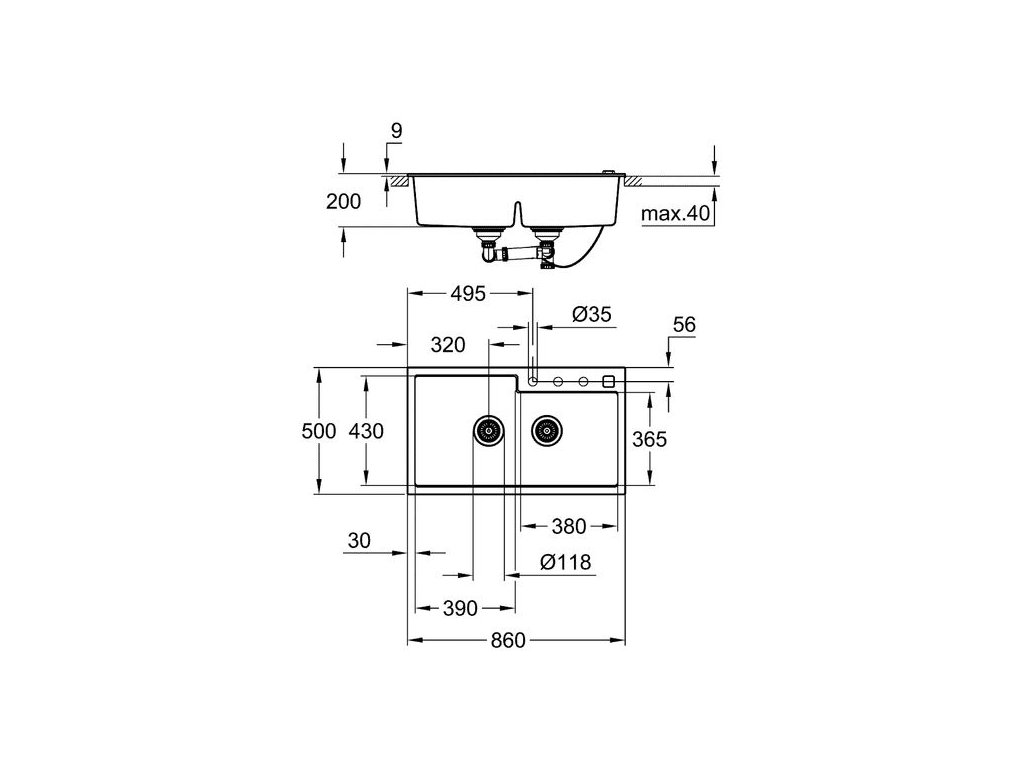 Grohe K500 Kompozitní dvoudřez 50x86 cm 31649AP0