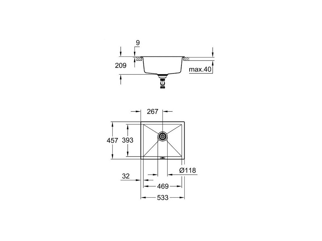 Hloubka vnitřní vaničky je 20 cm. Jedinečný proces výroby dodává těmto dřezům bezchybný povrch umožňující snadnou údržbu a zaručující 100% bezpečnost při kontaktu s potravinami. Kromě toho elegantní, moderní povrch z černé žuly nereaguje na UV paprsky, takže si zachová svůj elegantní vzhled po celou dobu životnosti. Technologie GROHE Whisper značně potlačuje hluk vody odtékající z dřezu. Systém GROHE QuickFix umožňuje rychlou a přímou instalaci.