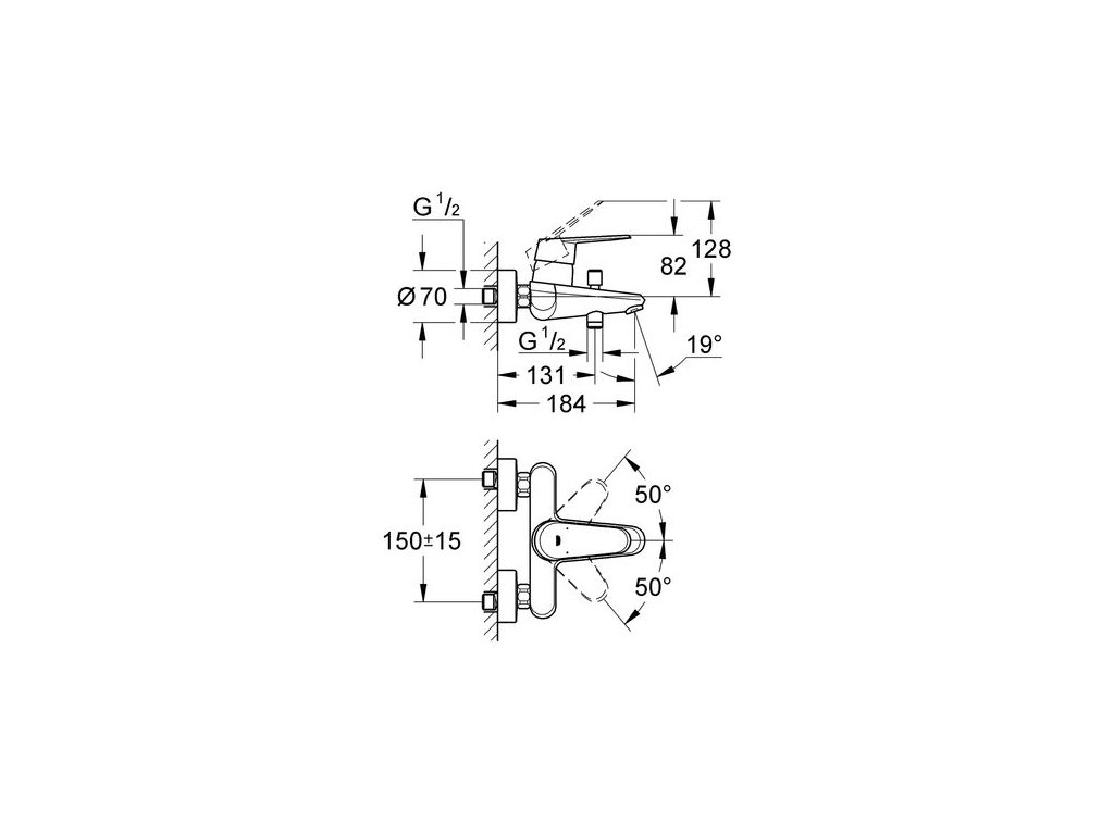 Grohe Baterie vanová nástěnná páková 33390002