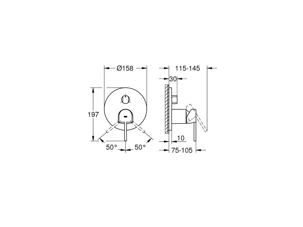 Doplňte svůj moderní koupelnový interiér v sofistikovaném stylu o tuto sadu baterie GROHE Plus s 3směrným přepínačem. Ergonomický design vybízí uživatele k interakci, zatímco robustní kování a ovládací páka vyvolávají pocit solidního řemeslného zpracování. Baterie se vyrábí v Německu. Nástěnná deska o průměru 158 mm a hloubce pouhých 10 mm vyvolává elegantní a efektní dojem. Inovativní, 3směrný přepínač má na délku pouhých 30 mm a umožňuje snadno přepínat mezi vanovou výpustí, hlavovou a ruční sprchou. Slouží také pro snadné nastavení jednoho ze dvou režimů proudu hlavové sprchy, případně pro spuštění ruční sprchy. Obzvláště vhodnou kombinaci tvoří tato baterie a hlavová sprcha GROHE Rainshower SmartActive se 2 režimy proudu. Keramická kartuše GROHE SilkMove je zárukou hladké a plynulé regulace objemu po celou dobu životnosti baterie. Dlouhotrvající povrchová úprava GROHE StarLight využívá fyzikální napařování (PVD), které je desetkrát odolnější proti poškrábání než běžný chrom. Systém GROHE QuickFix s patentovaným uzamykacím mechanismem a krytými šrouby s těsněním činí instalaci rychlou a jednoduchou. Tato baterie je určena pro instalaci spolu s univerzálním podomítkovým tělesem GROHE Rapido SmartBox (35600000), které je k dispozici zvlášť. A nemějte obavy: Toto kombinované řešení pro podomítkovou instalaci je 100% utěsněno a zabezpečeno proti úniku vody. Produktová kolekce GROHE Plus skvěle doplňuje sanitární keramiku GROHE Essence a Cube, případně sprchová řešení SmartControl a Rainshower SmartActive, a vytváří společně dokonale sladěný koupelnový interiér.