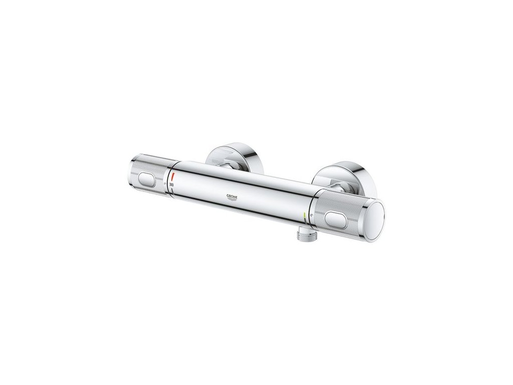 Bezpečnější a pohodlnější sprchování vám zajistí termostatická sprchová baterie GROHE Precision Feel - elegantní a stylová baterie pro moderní koupelny. Upgradujte výhody termostatického sprchování s touto nástěnnou termostatickou baterií, která nabízí větší pohodlí a bezpečnost. Její štíhlá válcová silueta je elegantní a minimalistická až po rozety. Snadno se ovládá i mokrýma nebo namydlenýma rukama - ergonomické rukojeti GROHE ProGrip mají vroubkovaný povrch pro skvělý úchop. 100% GROHE CoolTouch zajišťuje, že tělo baterie není nikdy příliš horké na dotek díky vnitřnímu chladicímu kanálu. Technologie GROHE TurboStat vám umožní vychutnat si vodu, která má vždy ideální teplotu bez výkyvů. Samozřejmostí je také bezpečnost, která z ní činí ideální volbu pro rodinné koupelny - dětem zabrání v přílišném zvýšení teploty tlačítko GROHE SafeStop , nastavené na 38 °C, a omezovač teploty GROHE SafeStop Plus, který lze nastavit na další limit 43 °C. Baterie disponuje funkcí úspory vody bez námahy, a to ve funkci GROHE EcoJoy, která snižuje průtok. Požadujete plný průtok? Pro uvolnění rukojeti stačí stisknout tlačítko EcoButton. Tato elegantní baterie je opatřena odolnou technologií GROHE StarLight, která zajišťuje dlouhotrvající třpytivý vzhled.