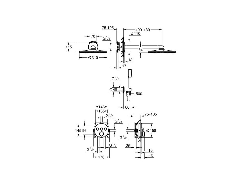 Termostat s univerzálním boxem Rapido SmartBox pro skrytou instalaci – má chladný moderní vzhled a německá konstrukce poskytuje prvotřídní výkon. Technologie TurboStat zajišťuje stálý přísun vody o dokonalé teplotě, zatímco technologie Water Saving snižuje spotřebu vody a energie bez kompromisů ve výkonu. Inovativní technologie SmartControl vám umožní snadno ovládat sprchu – jednoduše vyberte požadovaný zdroj proudu a upravte množství vody, od úsporného až po plný průtok pouhým stisknutím tlačítka. Tři ventily nabízejí naprostou flexibilitu – můžete přepínat nebo dokonce kombinovat různé tvary postřiku a výstupy vody. Je vhodný i pro rodinu, protože tlačítko SafeStop je nastaveno na 38 °C, takže opaření je minulostí. Volitelné SafeStop Plus vám umožní přidat další limit 43 °C pro vyšší úroveň bezpečnosti. Velkorysá hlavová sprcha o průměru 310 mm, která má rameno o průměru 430 mm, má náš měkký a uvolňující sprej PureRain a silný ActiveRain, který je skvělý pro oplachování vlasů a stimulaci pokožky. Tyčová ruční sprcha má náš klasický všestranný normální sprej. Dodává se s držákem s vývodem sprchy a 1500mm hadicí s funkcí TwistStop. Technologie DreamSpray zajišťuje rovnoměrný proud z každé silikonové trysky SpeedClean, kterou lze vyčistit pouhým kartáčkem prstu. Odolná povrchová úprava Long-Life se snadno čistí a zachová úchvatný vzhled sady po mnoho let. A dobrou zprávou je, že instalace obložení je rychlá a snadná díky FastFixation, která má uzamykací systém, kryté kování a těsnění hřídele.