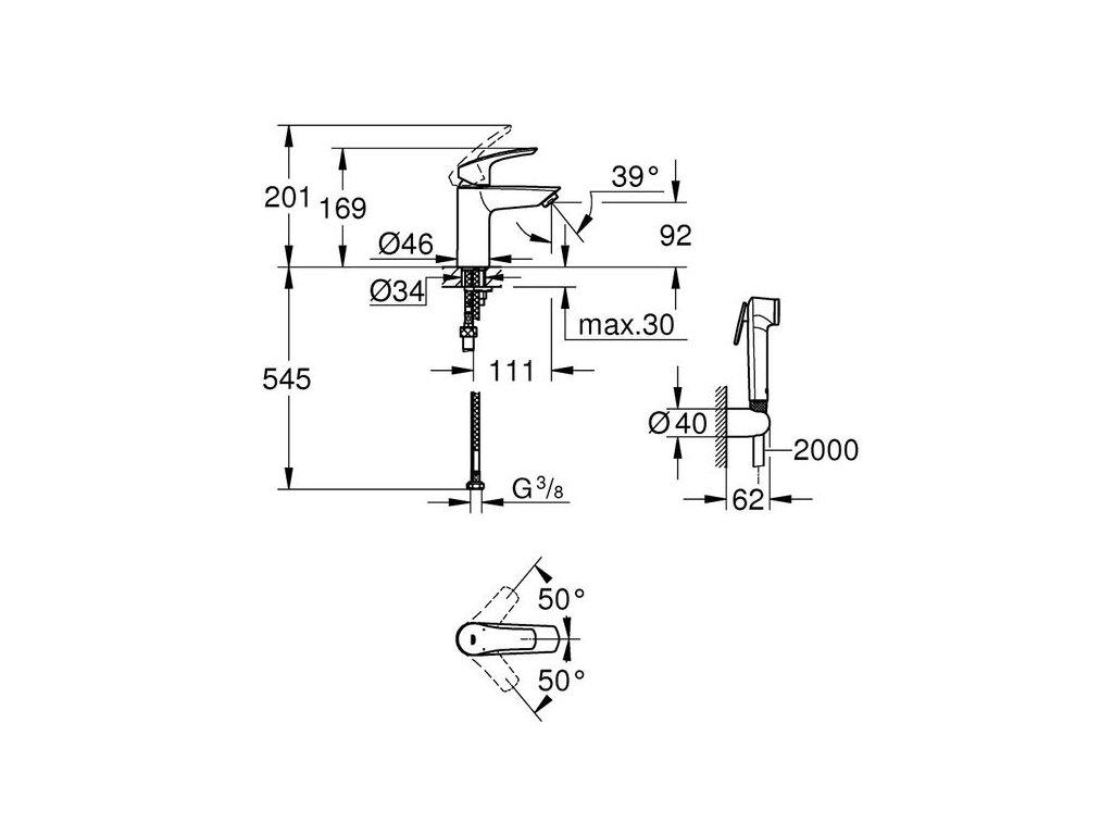 Grohe Professional Eurosmart Baterie umyvadlová s bidetovou sprškou, černá matná