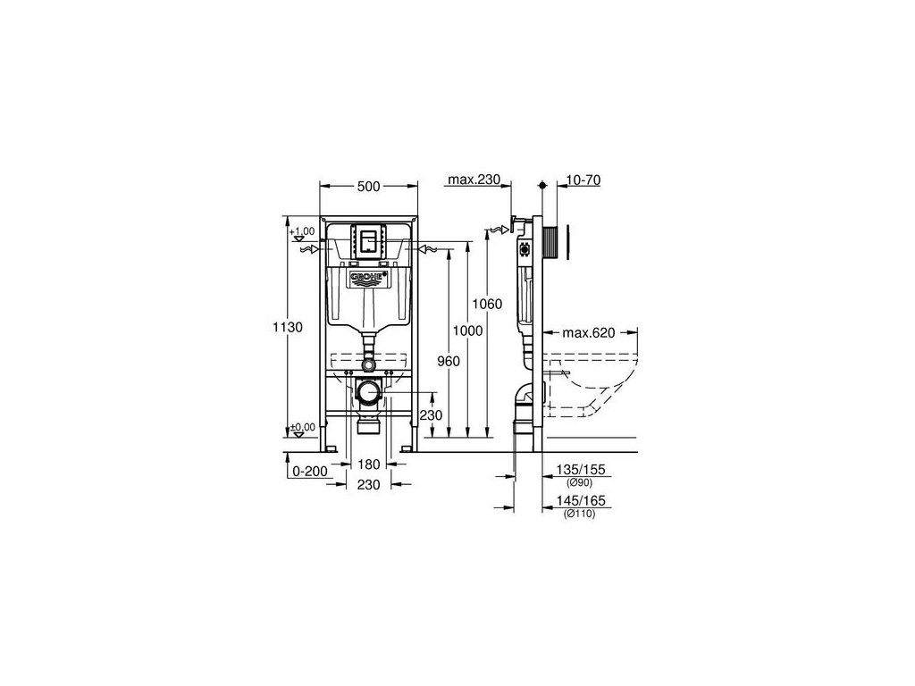 - včetně revizní šachty 40 911 000 pro montáž malých splachovacím tlačítek