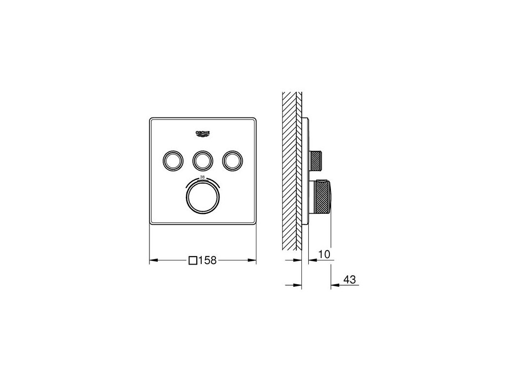 GROHE SafeStop (Plus) – dvojitá ochrana proti popálení nastavená na 38 °C, resp. (volitelně) 43 °C