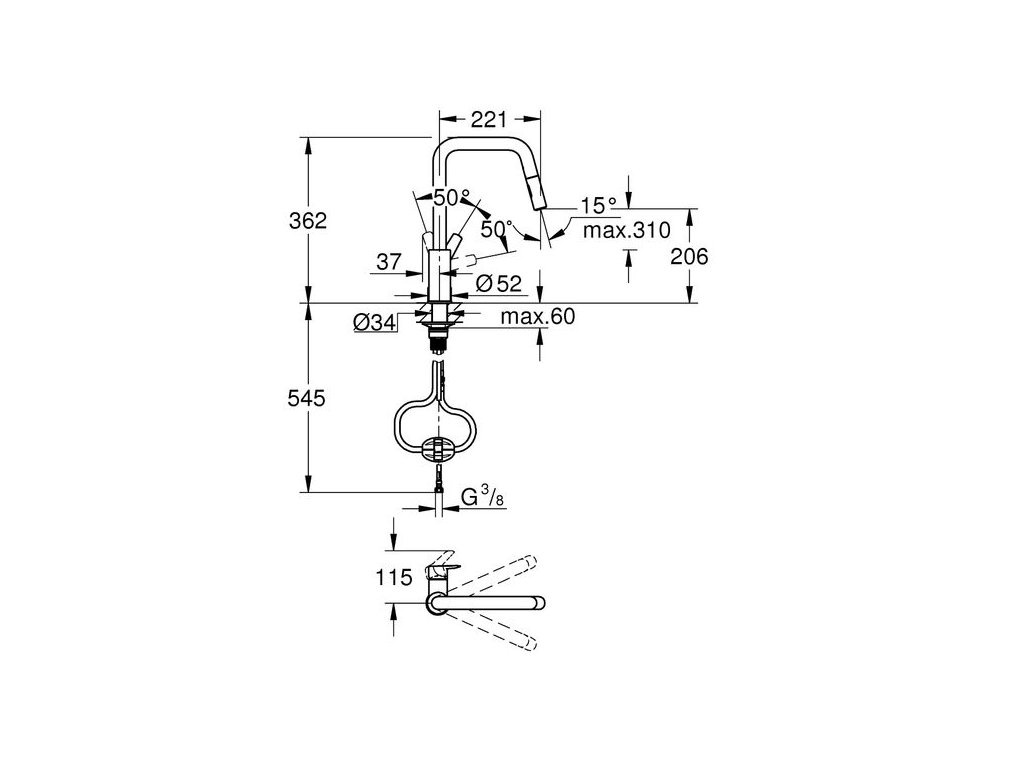 Grohe Start Baterie dřezová otočná s 2-polohovou vytahovací sprškou, chrom 30631000
