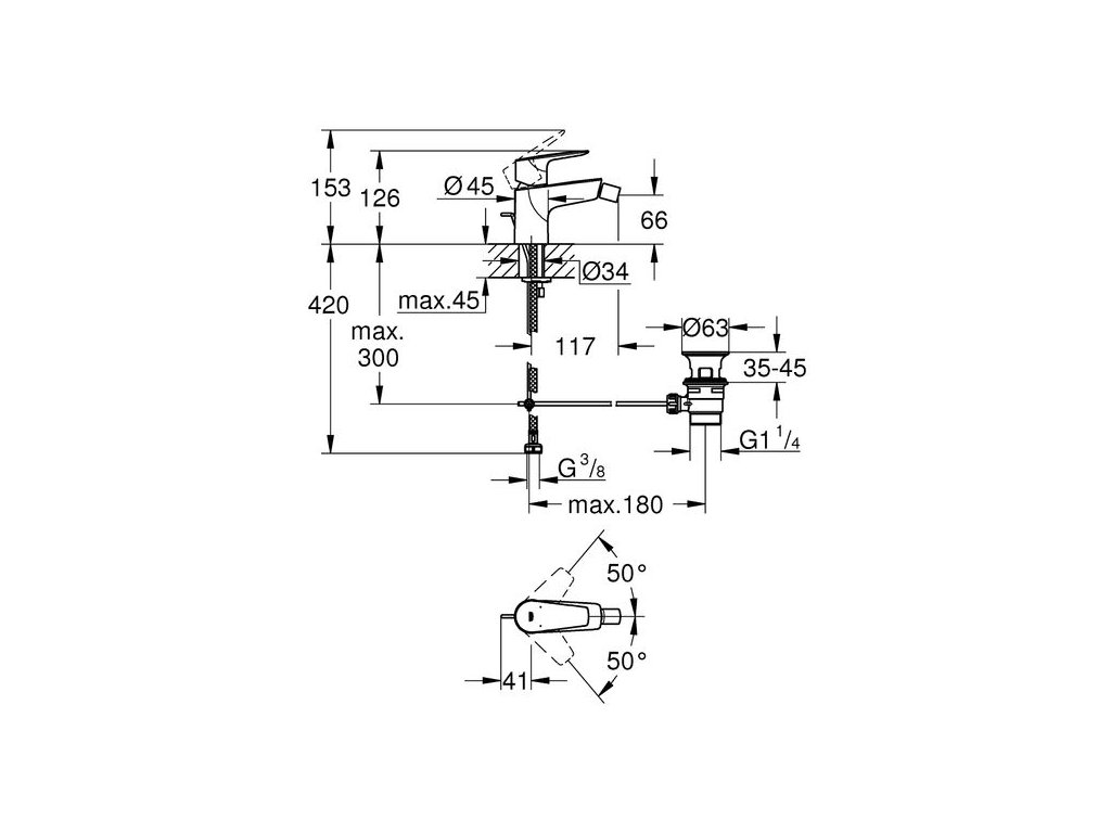 Je určena k instalaci do jednoho otvoru a ovládá se pomocí pákové rukojeti, která je navržena v úhlu 7 stupňů a vybízí k interakci. Výpusť je opatřena kulovým kloubem, který umožňuje přesný úhel stříkání. Keramická kartuše GROHE LongLife uvnitř nabízí dlouhodobě spolehlivou regulaci objemu a teploty a navíc omezovač teploty pro úsporu energie. Technologie GROHE EcoJoy snižuje spotřebu vody na 5,7 l/min, ovšem poskytuje dostatečný a komfortní proud vody. Odtoková souprava se ovládá malým táhlem na zadní straně baterie, takže jej můžete otevírat a zavírat, aniž byste si namočili ruce. Systém snadné instalace spolu s flexibilními připojovacími hadicemi znamená, že montáž baterie je otázkou několika málo minut. Odolný chromový povrch GROHE StarLight zaručuje zachování zářivého lesku této exkluzivní koupelnové baterie po mnoho let.