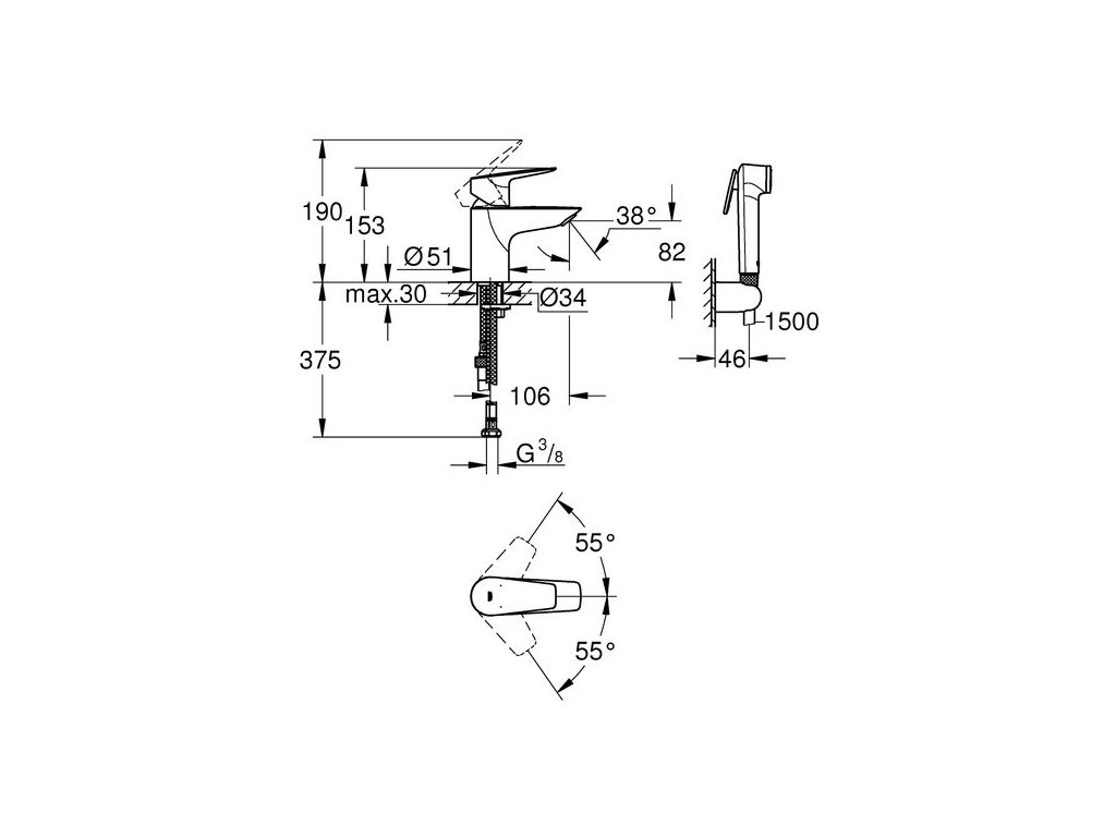 Grohe Start Edge Baterie umyvadlová páková s bidetovou sprškou chrom