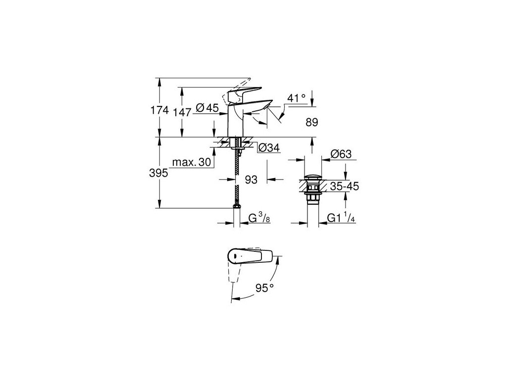 Tato umyvadlová baterie GROHE Start Edge standardní velikosti vnese do každé koupelny svěží a nový pocit díky užitečným funkcím navrženým s ohledem na moderní bydlení a doplněným o detaily, jako je páková rukojeť skloněná v sedmi stupních pro uživatelský komfort.
