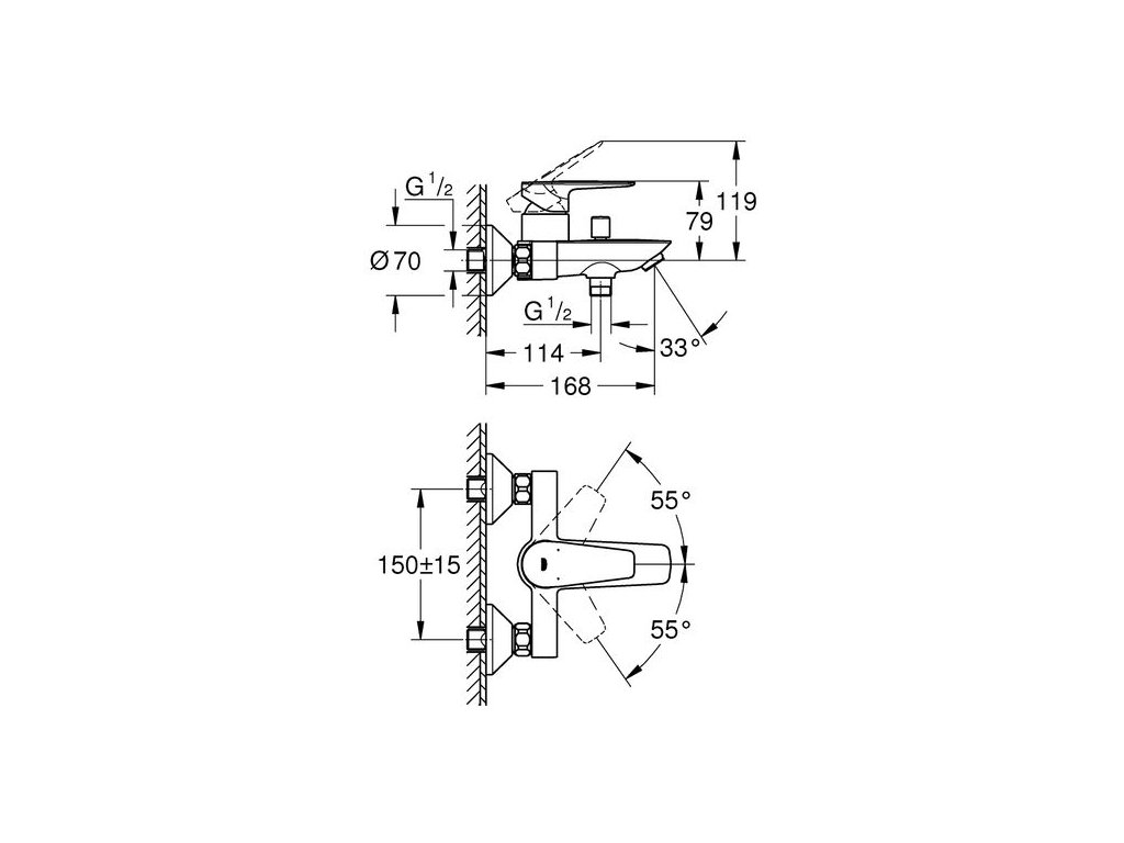 Grohe Start Edge Páková Baterie vanová nástěnná chrom 24198001