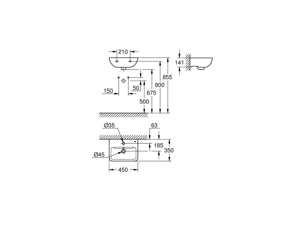 Grohe Start Edge Závěsné umývátko 45 x 35 cm, alpská bílá 39953000