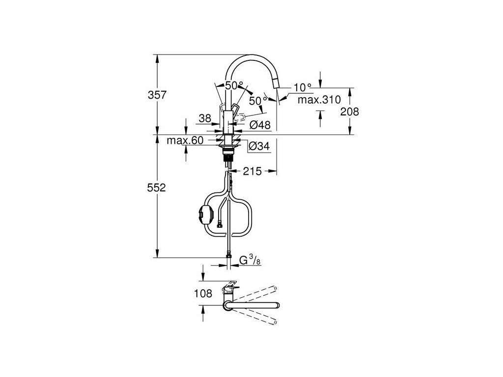 Grohe Start Loop Baterie dřezová otočná s vytahovací koncovkou, chrom 30556000