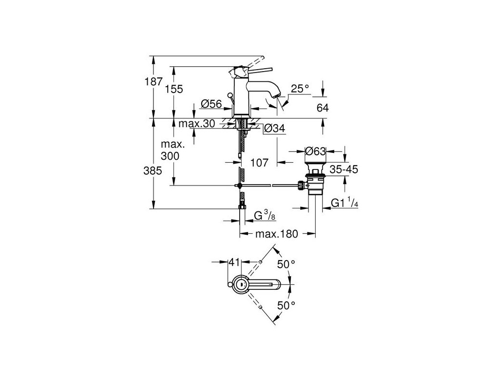 Grohe Start Baterie umyvadlová páková s výpustí chrom 23810000