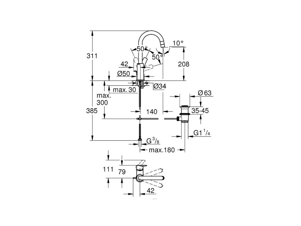 - Včetně nástroje GROHE QuickTool