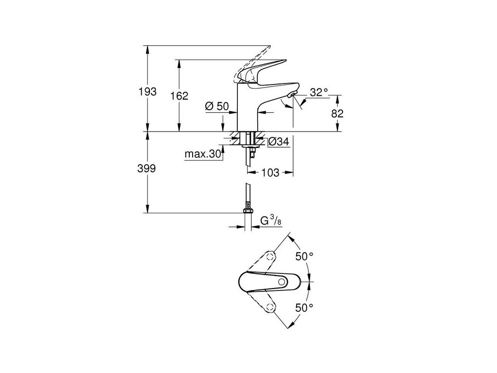 Grohe Swift Baterie umyvadlová S bez výpusti, chrom 24317001
