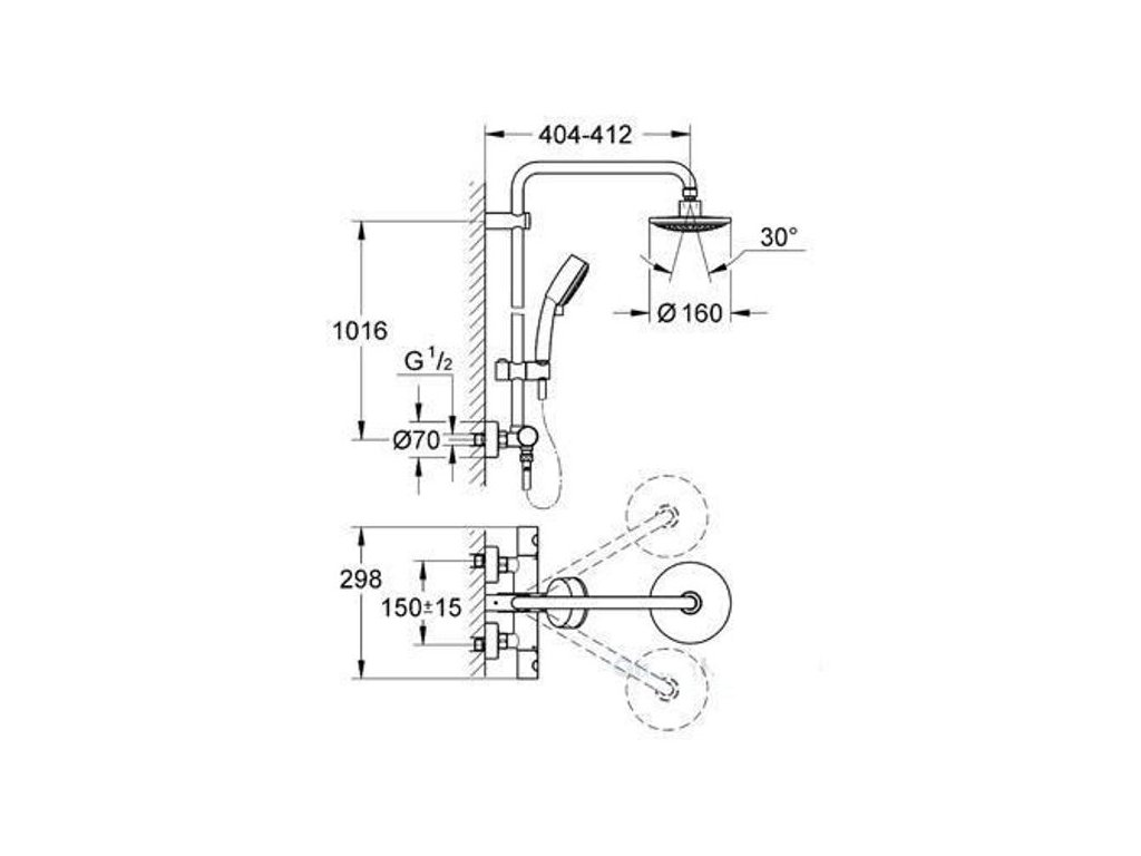 Ponořte se do speciální komfortní zóny vytvořené sprchovým systémem GROHE. Toto sprchové rameno je možné otáčet o 180°, takže je možné nasměrovat sprchovou hlavu přímo do středu vašeho sprchového koutu, a to i v případě, že se zapojení baterie nachází na straně. Jeho délka přispívá k vytvoření extra širokého poloměru proudu vody.