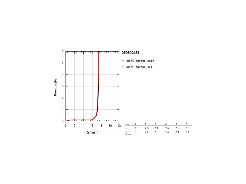 - průtok při 0,3 MPa: Jet: 7,3 l/min, Rain: 7,4 l/min