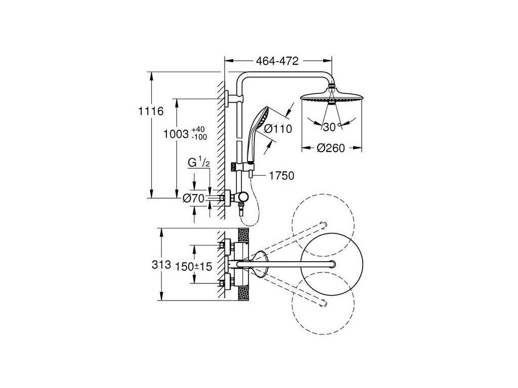 - volitelný omezovač teploty GROHE SafeStop Plus na úrovni 43 °C