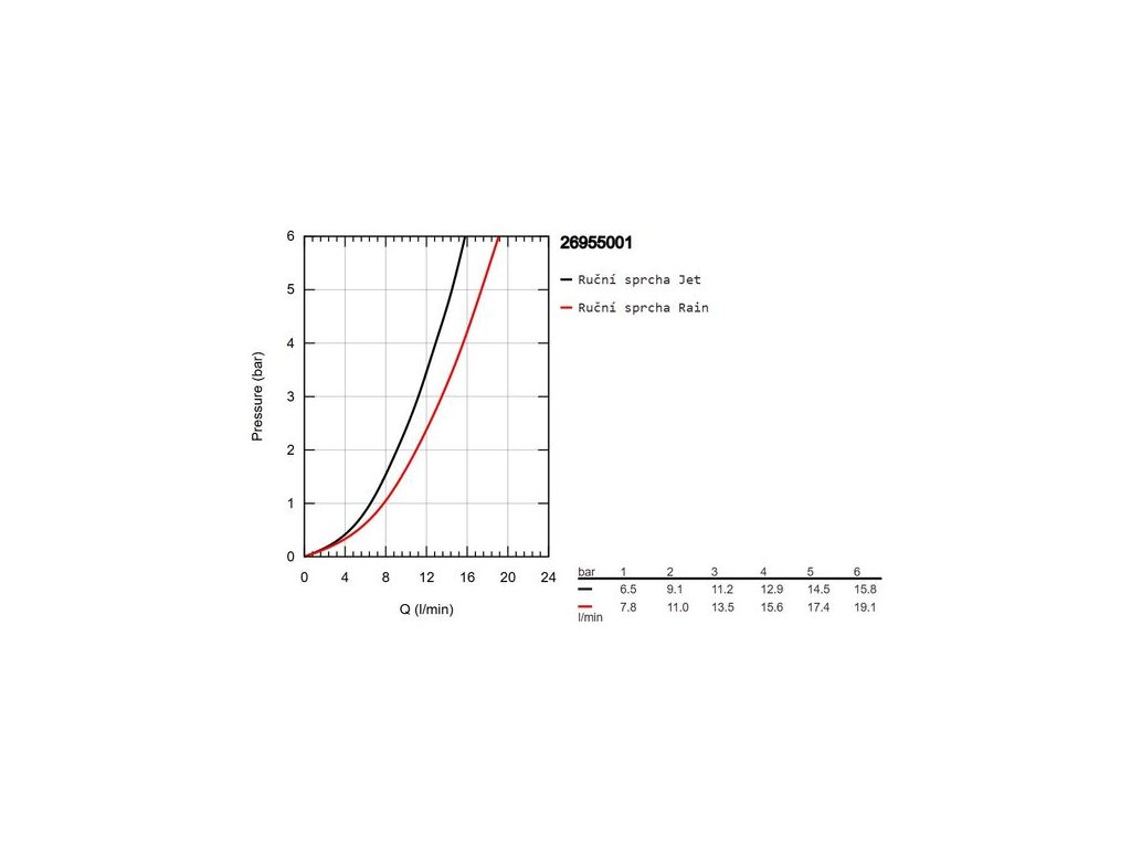 - průtok při 0,3 MPa: Jet: 11,2 l/min, Rain: 13,5 l/min