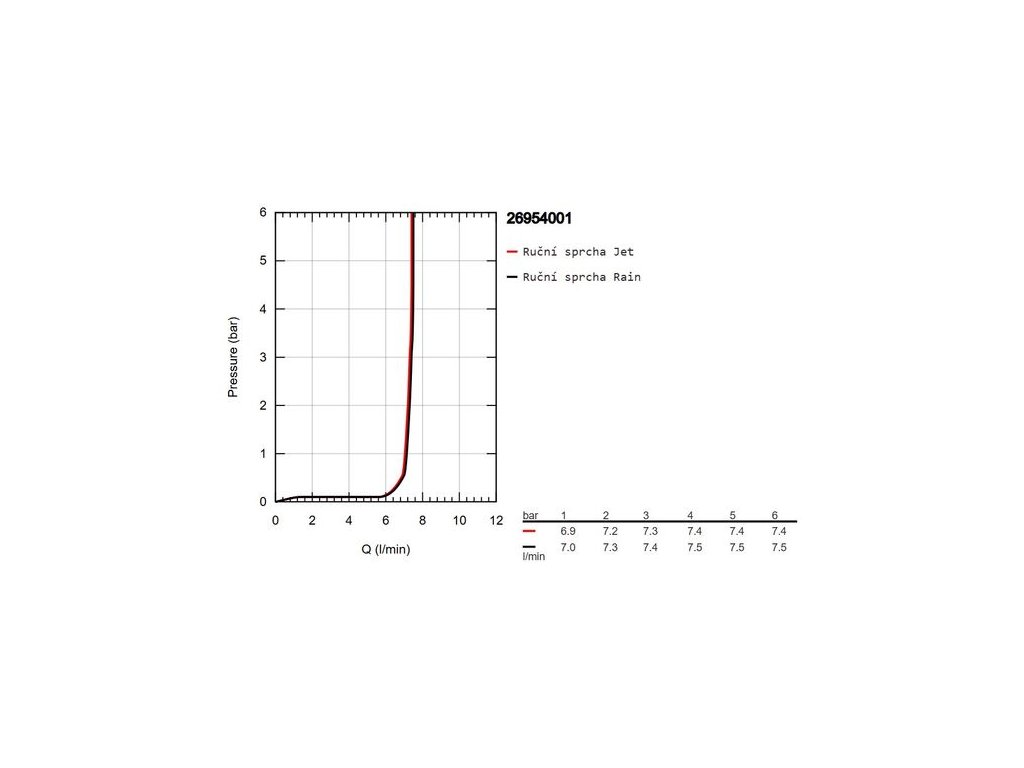 - průtok při 0,3 MPa: Jet: 7,3 l/min, Rain: 7,4 l/min