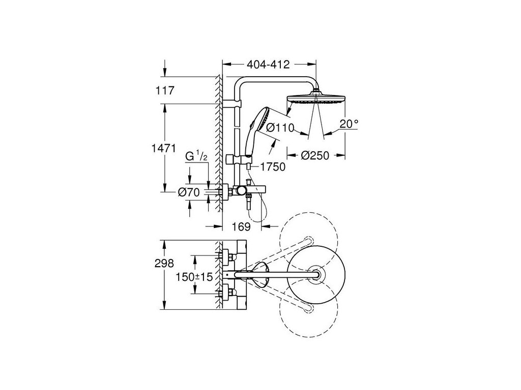 termostatická vanová baterie nástěnná, s funkcí Aquadimmer