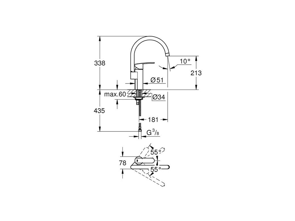 Grohe Wave Cosmopolitan Dřezová páková Baterie stojánková chrom 32449001