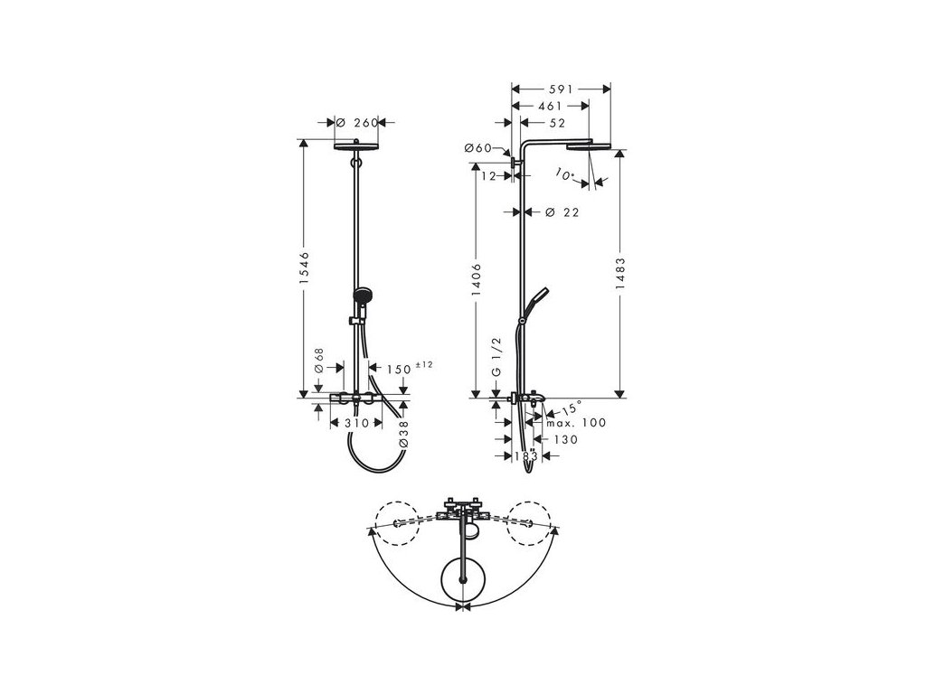 - maximální průtokové množství pro Showerpipe při tlaku 3 bary: 18,9 l/min