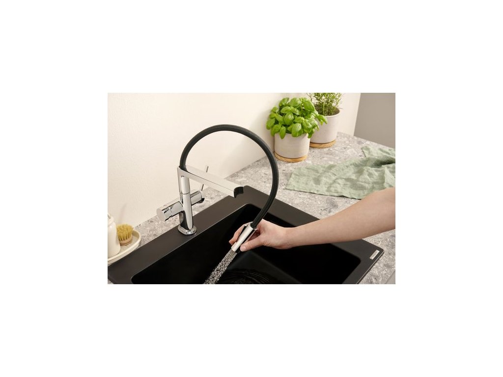 Hangrohe Talis Select M54 PowderSpray Baterie dřezová, 3 trysky, chrom/černá