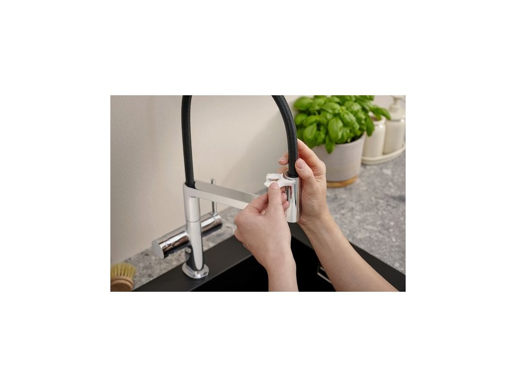 - aretovatelný přední sprchový proud, který se vrací zpět manuálně stisknutím přepínače proudu a automaticky uzavřením rukojeti