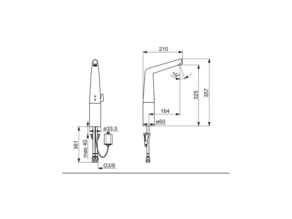 Vysoká umyvadlová baterie DN15, řízená bezdotykově elektronicky