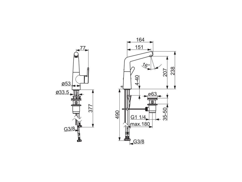 připojení tlakové hadice G 3/8 vyložení: 150 mm