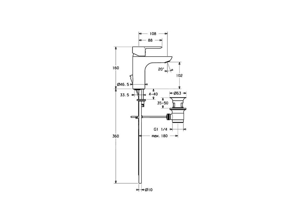 | Ovládání výpusti: | Táhlo |
