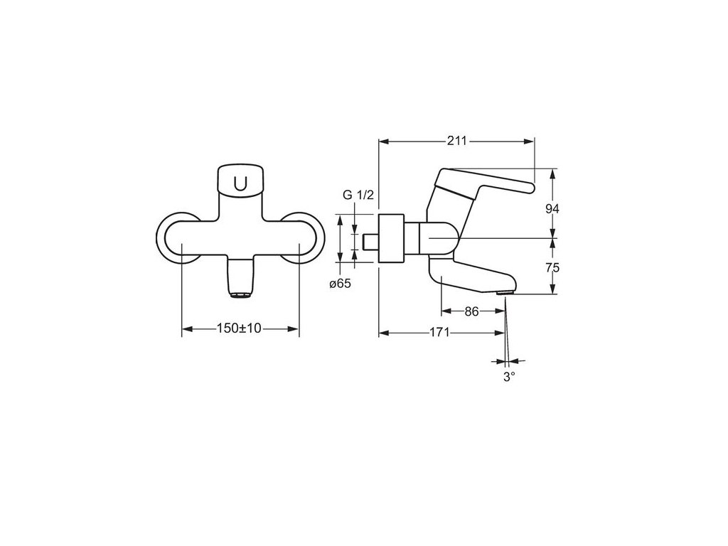 Hansa Medipro Baterie umyvadlová nástěnná páková, chrom