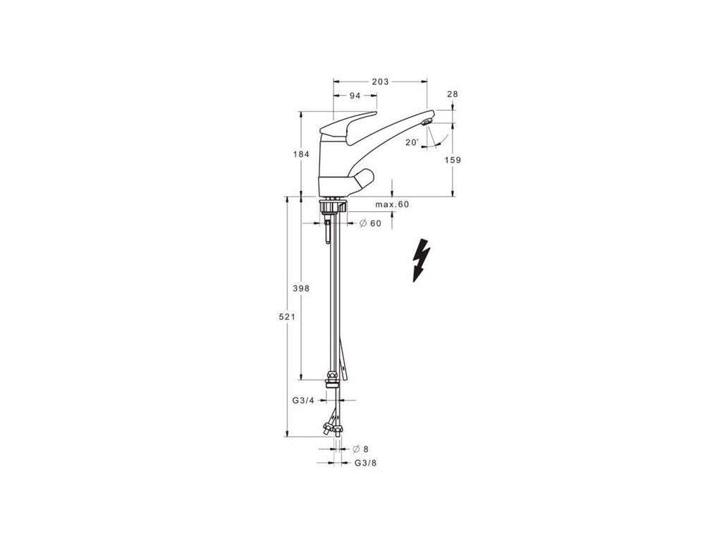 - Velikost přípojky: G3/8