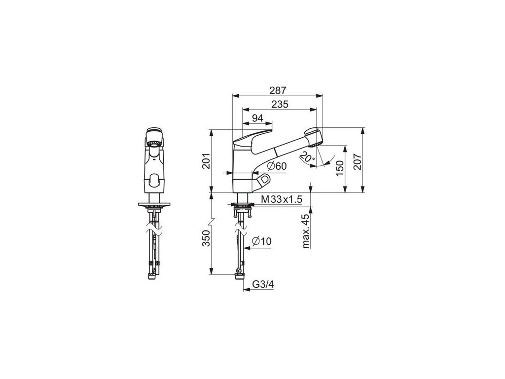 - Otočné výtokové rameno, Vytahovací výtokové rameno