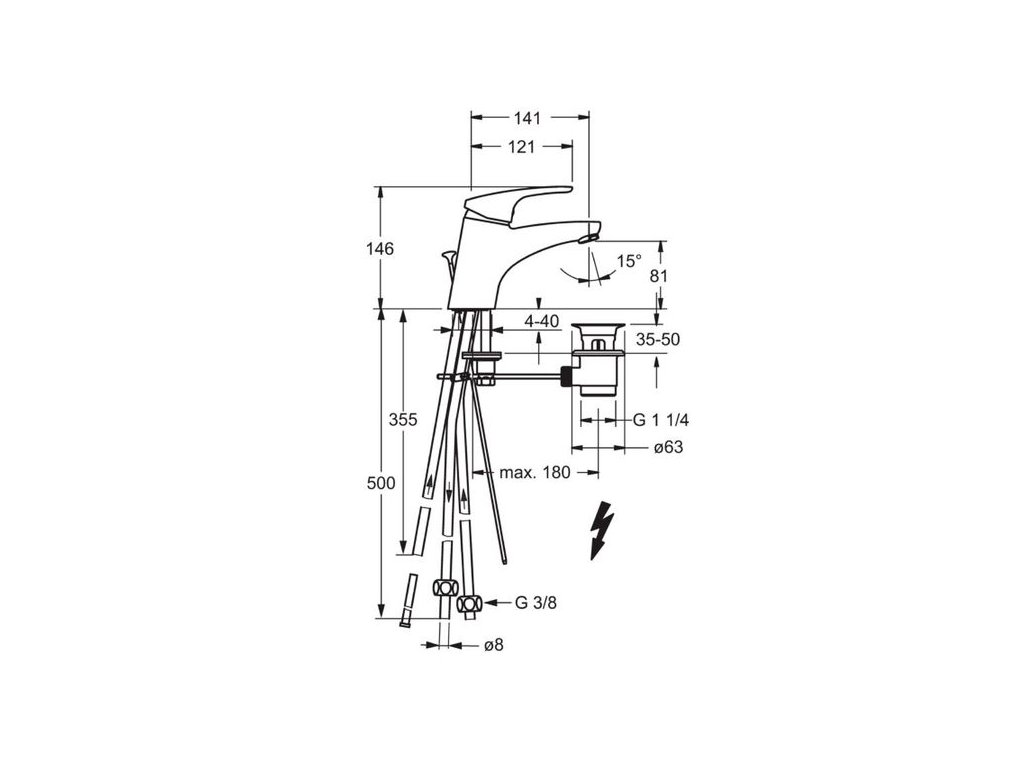 - Páka se symboly teplé a studené vody, Jedna ovládací páka / rukojeť