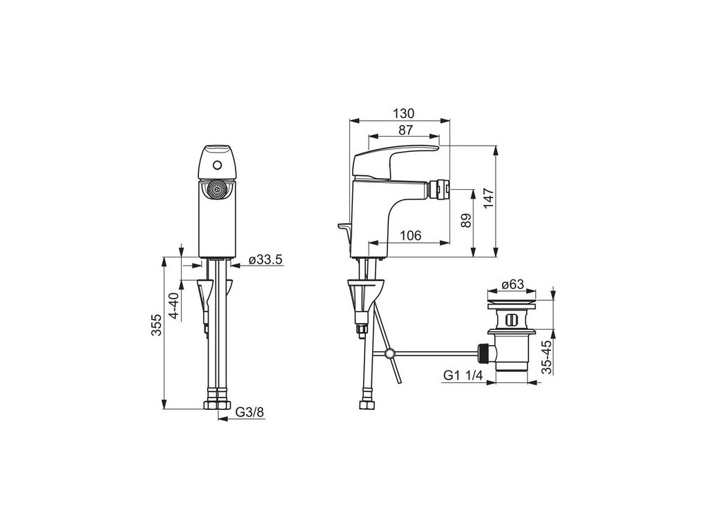 Hansa Pinto Baterie bidetová s táhlem, chrom 45073283