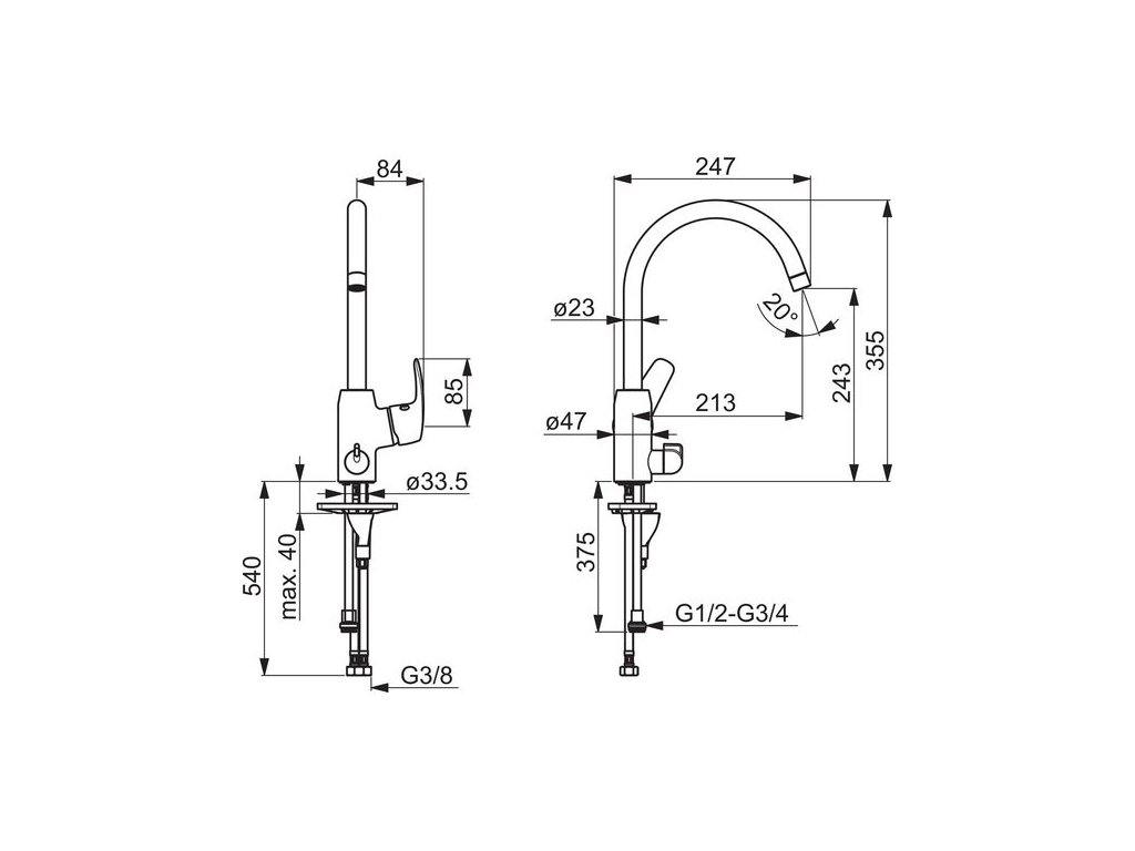 - Velikost přípojky: G3/8