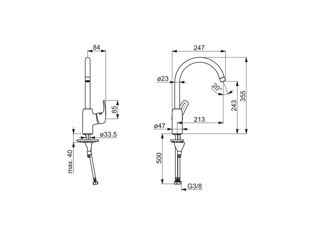 - Otočné výtokové rameno - možnost omezení rozsahu otáčení
