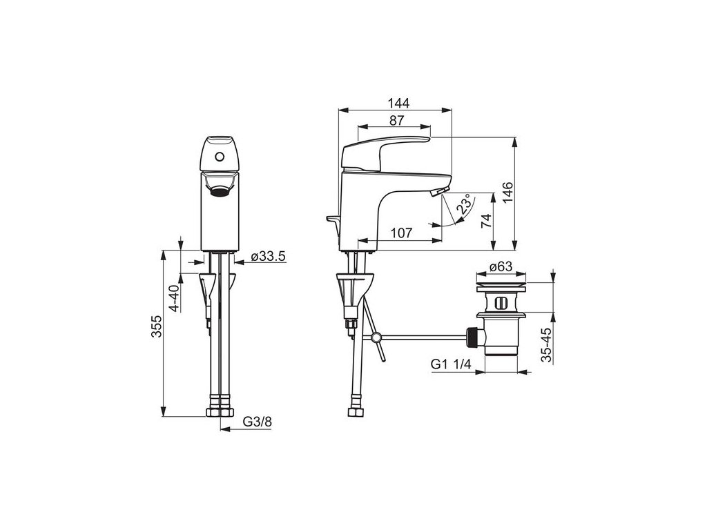 | Ovládání výpusti: | Táhlo |