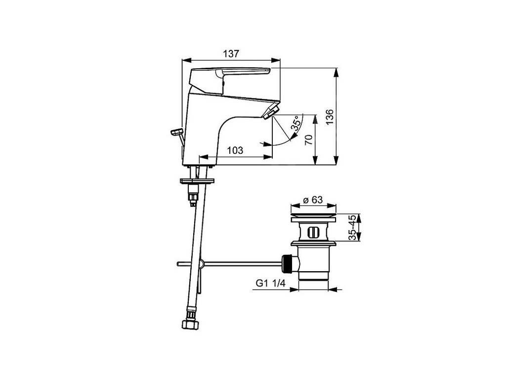 - mechanický uzávěr odpadu s táhlem