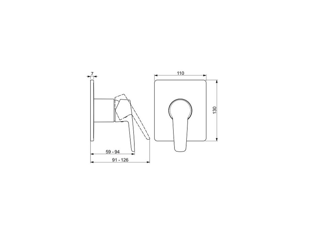 - Jedna ovládací páka / rukojeť, Páka se symboly teplé a studené vody