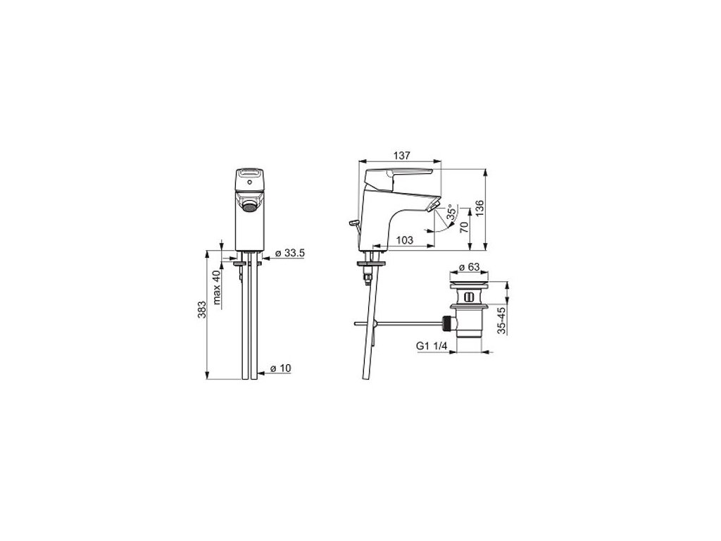 - ø 35 mm keramická kartuše pro ovládání teploty a průtoku vody