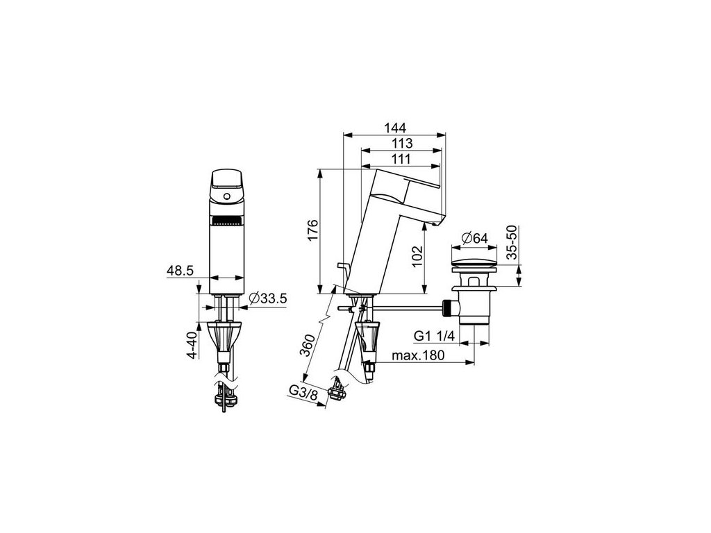 - ø 40 mm keramická kartuše pro ovládání teploty a průtoku vody