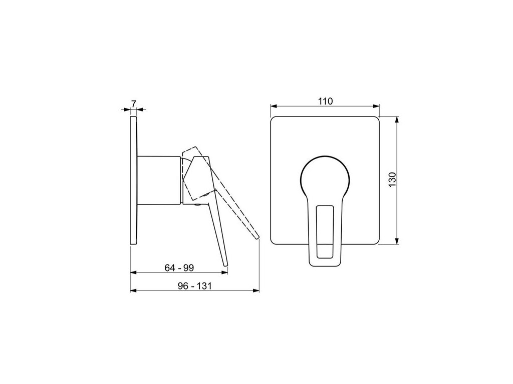 - Jedna ovládací páka / rukojeť, Páka se symboly teplé a studené vody