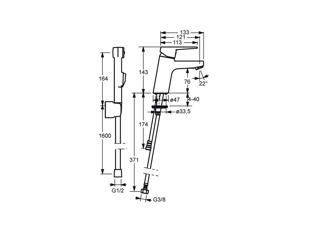 - připojení tlakové hadice G 3/8