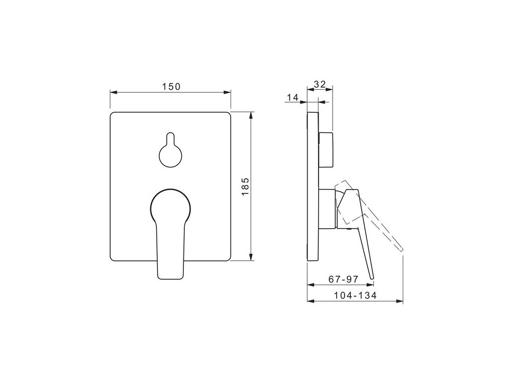 - Páka/rukojeť: Páka se symboly teplé a studené vody, Jedna ovládací páka / rukojeť